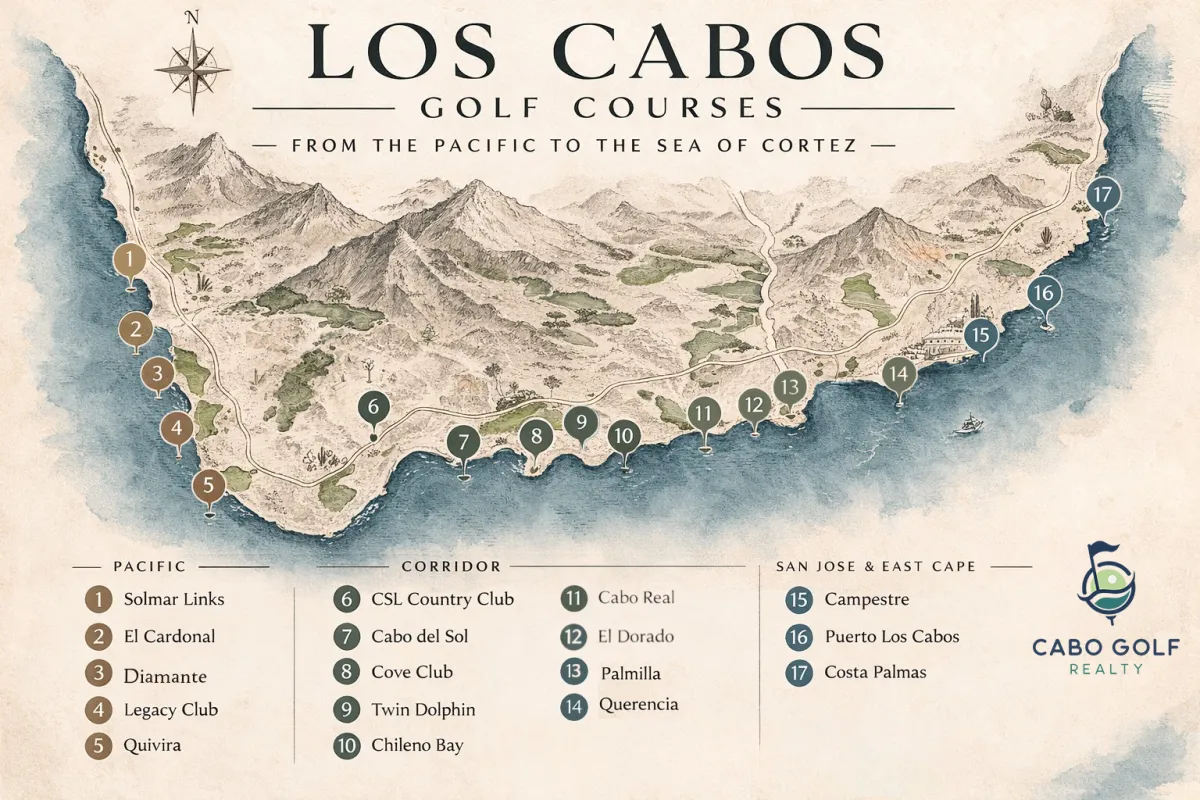 Los Cabos golf communities offer some of the most desirable real estate and lifestyle opportunities in Baja California Sur. Located along the coastline from Cabo San Lucas through the Tourist Corridor to San José del Cabo and the East Cape, these master-planned communities combine world-class golf with luxury homes, ocean views, and resort-style amenities. Many of the region’s premier courses were designed by legendary architects including Jack Nicklaus, Tiger Woods, Tom Fazio, Davis Love III, Fred Couples, and Tom Weiskopf, helping establish Los Cabos as one of the leading golf destinations in North America.